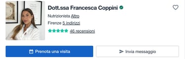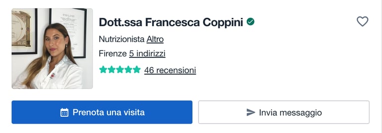 Sono Francesca Coppini, biologa nutrizionista con studi a Vicenza e Firenze.